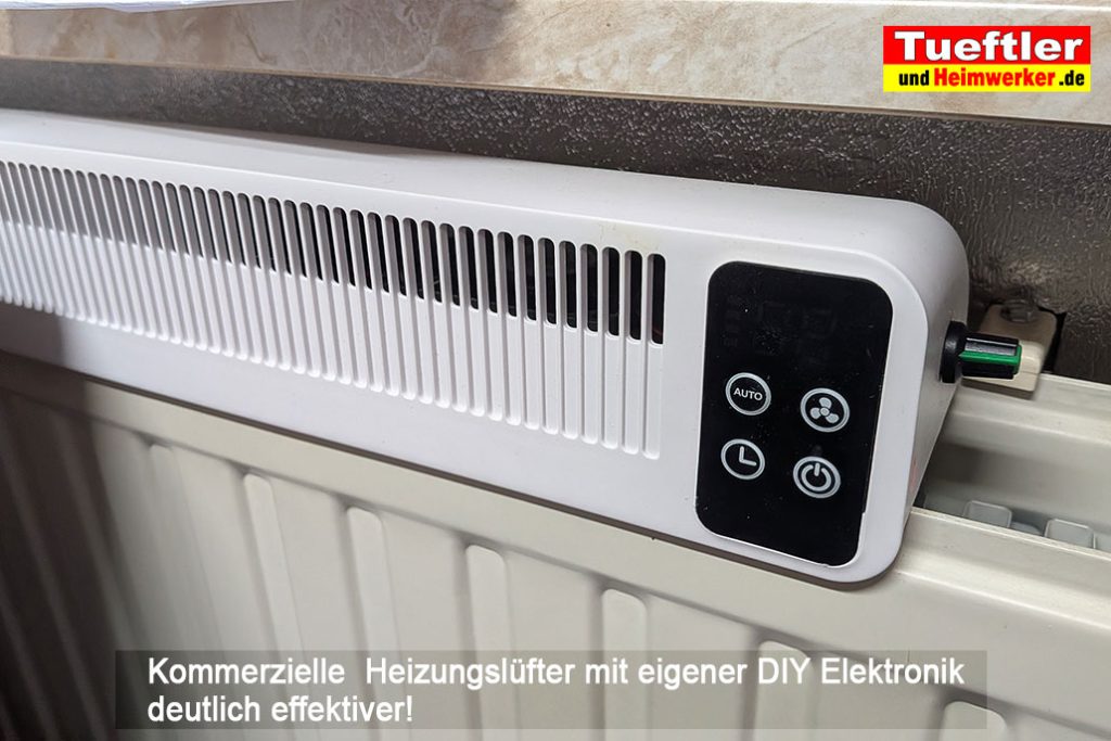 Ein Heizkörperlüfter, wie ich ihn unten als DIY-Projekt zeige, kann helfen, diese Heizdauer erheblich zu verringern. Im Test konnte die Heizdauer bei uns teilweise um mehr als die Hälfte reduziert werden. Die Leistung eines Heizkörpers wird durch solch einen Lüfter einfach erheblich gesteigert, ein Plattenheizkörper mit 2 Platten (Typ 22) liefert dann eventuell so viel Leistung wie ein Heizkörper mit 3 oder 4 Platten. Aus diesem Grund spricht man bei Heizungsventilatoren bzw. Heizkörperventilatoren oft auch von Heizkörperverstärker oder Heizkörper-Booster.